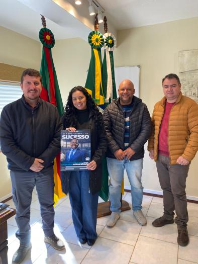 O Prefeito Municipal de Lavras do Sul, Renan Delabary, recebeu em seu gabinete a consultora empresarial Camila Rodrigues, que está na cidade desenvolvendo um projeto direcionado ao fortalecimento do comportamento de colaboradores no ambiente de trabalho.
