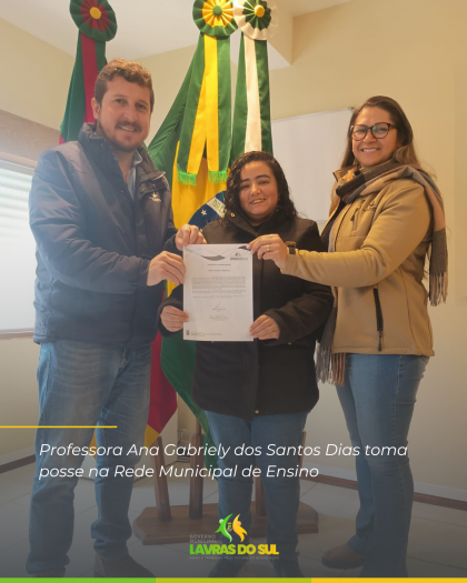 Na manhã desta sexta-feira, 11 de julho, a professora Ana Gabriely dos Santos Dias tomou posse como servidora da Rede Municipal de Ensino.